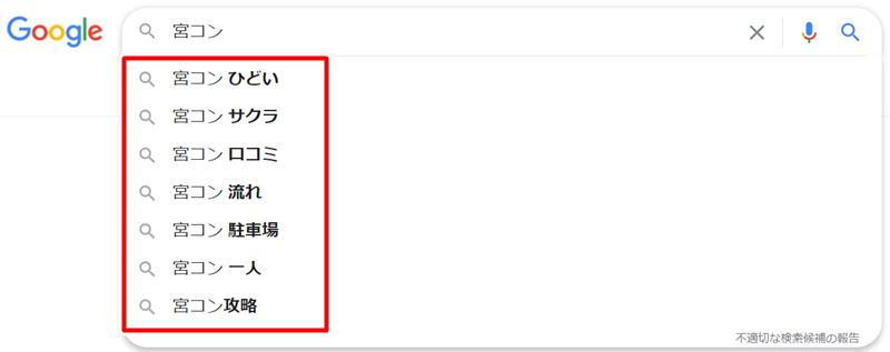 上の画像は、宮コンについて世間の方が実際に調べている言葉です。