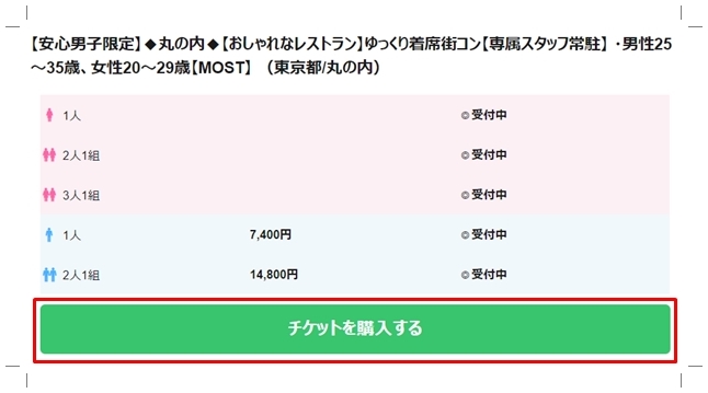 参加者の集まり具合(男女比含め)によりますが、いずれのイベントも開催直前に〆切を設けていることが多いので滑り込みでいけるかチェックしてみましょう。