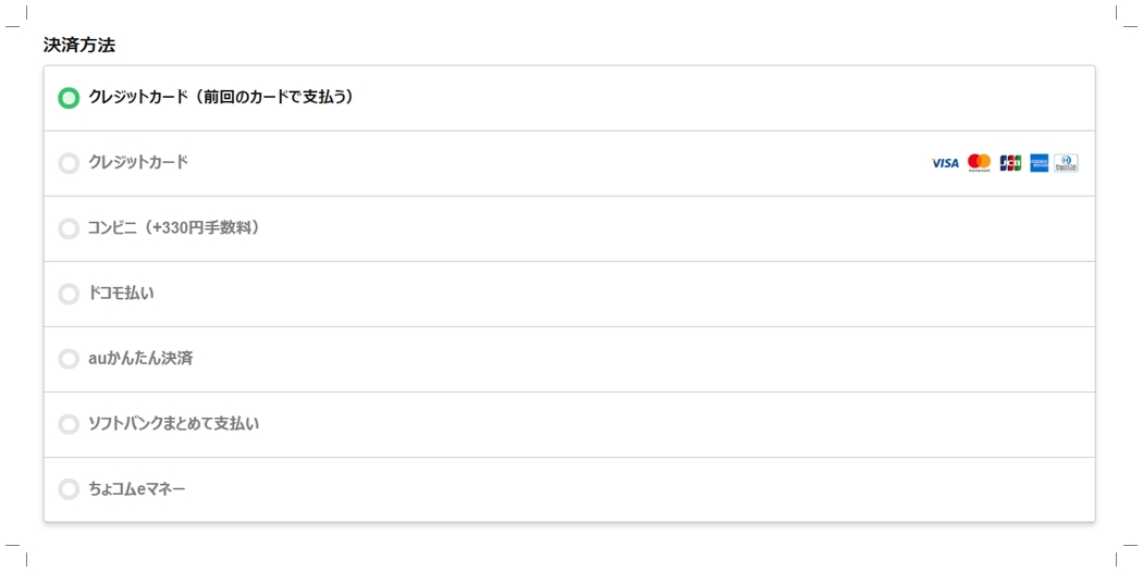 一度利用をすると(前回のカードで支払う)という選択項目が増えるので便利です。