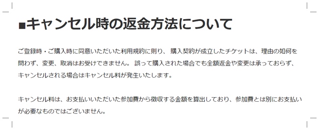 - 自己都合のキャンセルはいかなる場合も返金不可