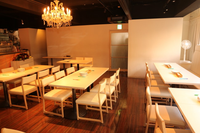4人がけのテーブルが何個か置いてあり、隅の方にバーカウンターらしきものがあった。天井には豪華さの代名詞シャンデリアがデカデカと吊るしてあった。